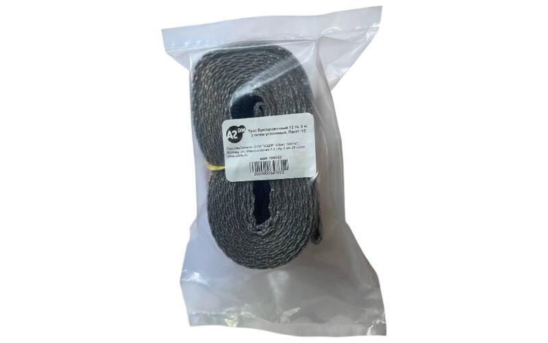 Трос буксировочный стропа А2ДМ 5м, 3т, 50мм, петли, пакет ...